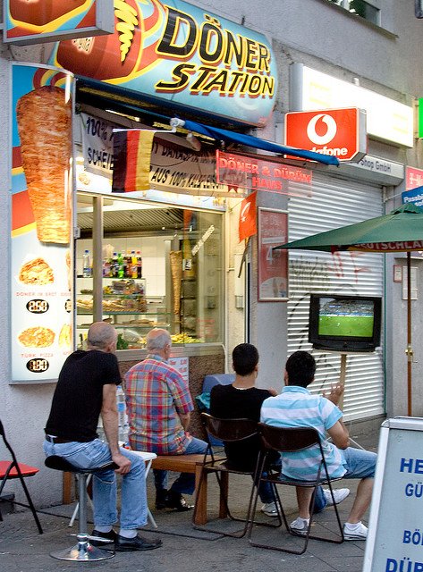 Nede foran den lokale döner-joints gamle rørfjernsyn, på en klapstol og med en dåsepils i poten? I den lokale Biergarten med en Bratwurst i hver hånd og en fadøl mellem tænderne? Sammen med tusinde brunstigt brølende tyskere foran en storskærm i Kulturbrauerei eller ved Brandenburger Tor?